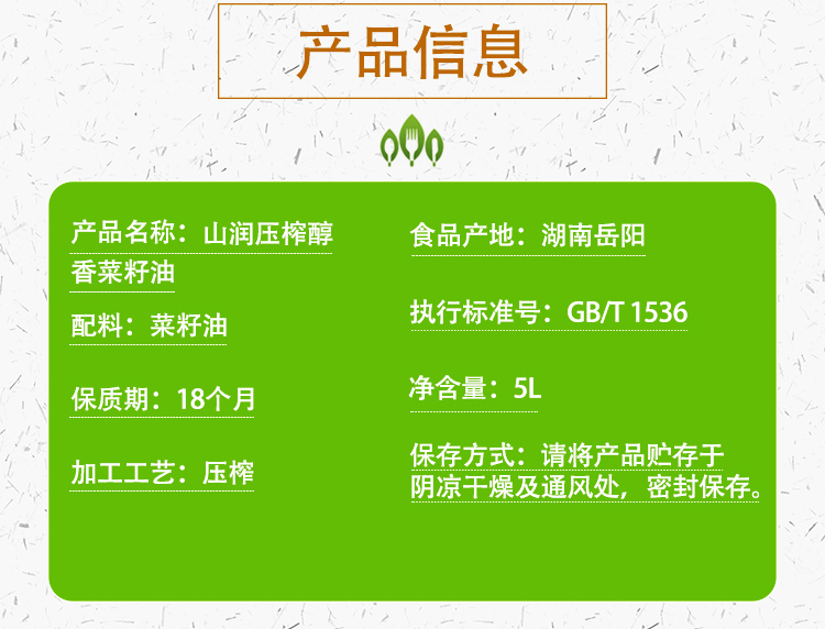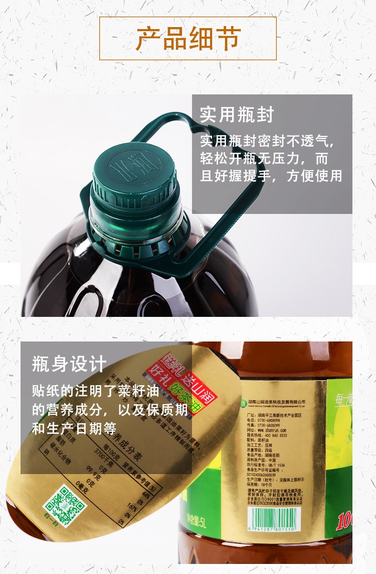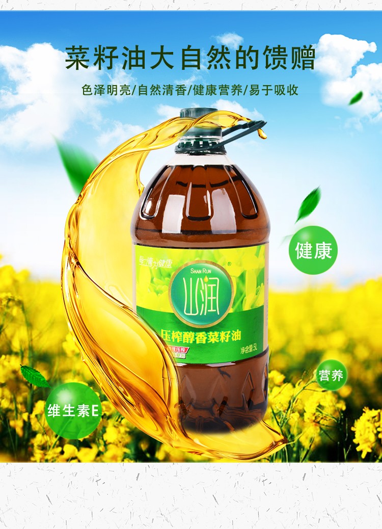 • 产品名称:山润压榨醇香菜籽油5L