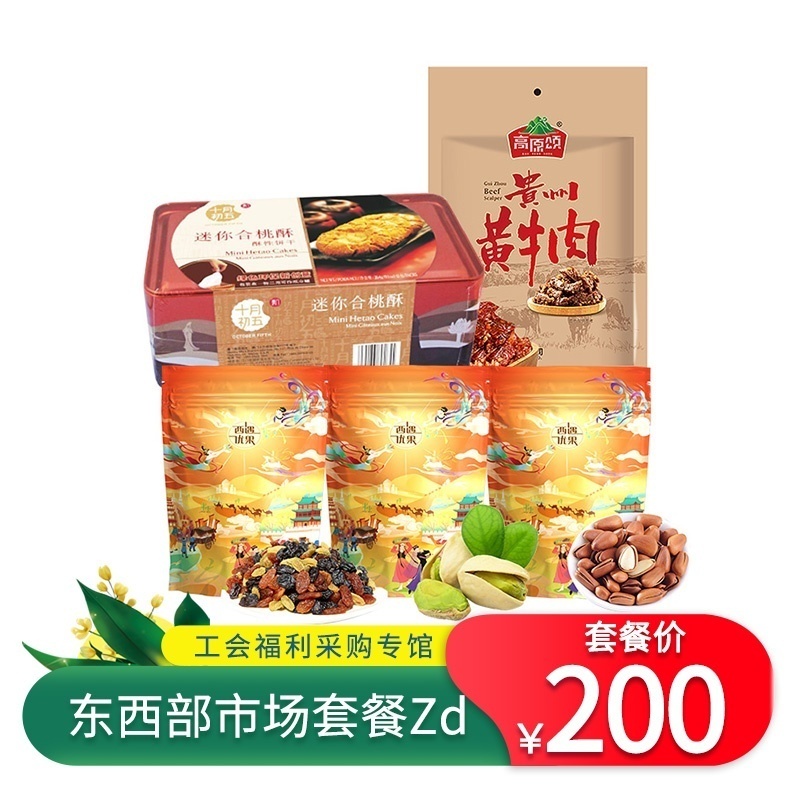 本色开心果225g+东北松子225g+新疆三彩葡萄干300g+迷你合桃酥264g+贵州黄牛肉76g/包